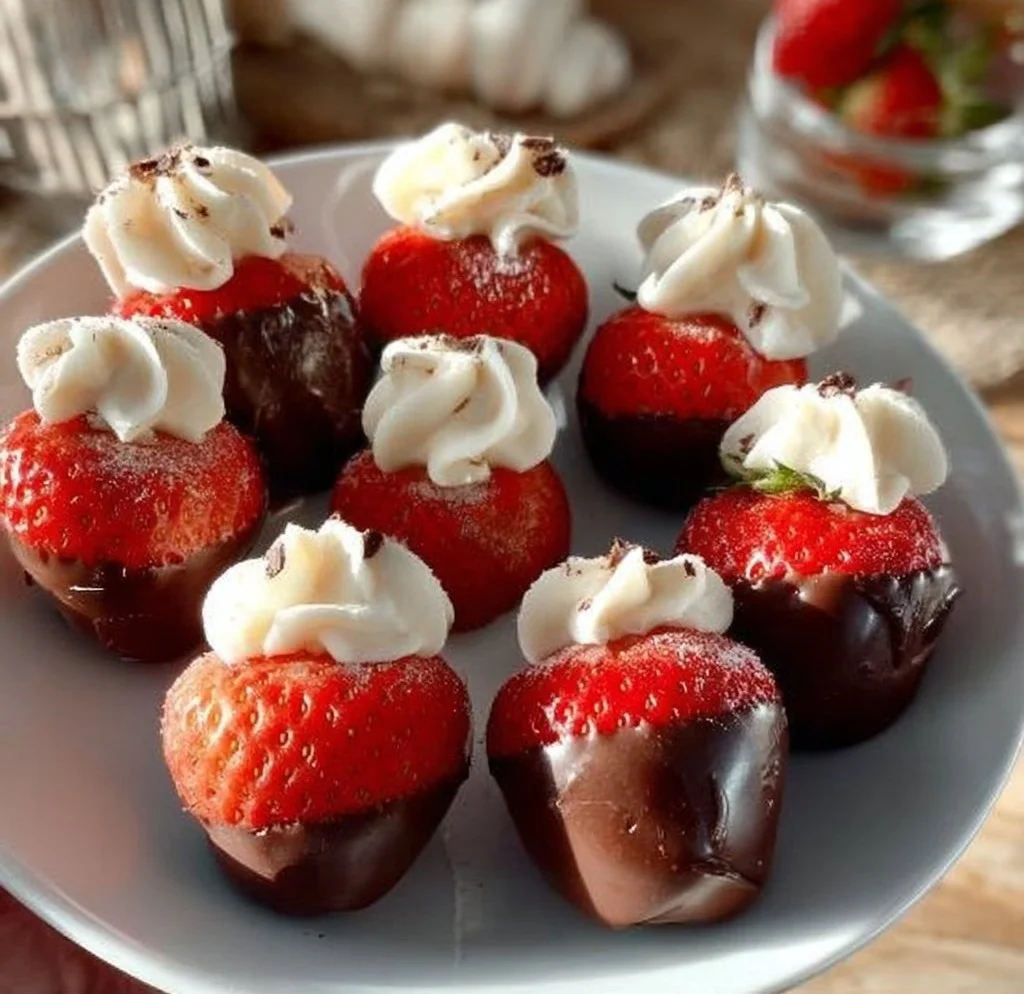 You’ll melt chocolate, dip and set the strawberries, whip a simple cheesecake filling, and pipe it back into the hulled centers. The basic flow: