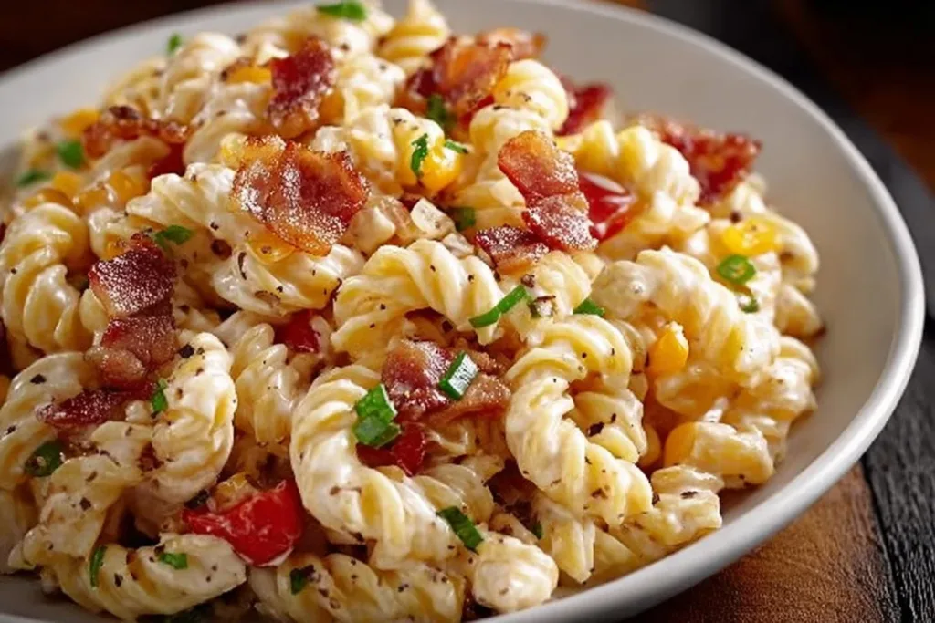 Creamy Bacon Cheddar Ranch Pasta Salad