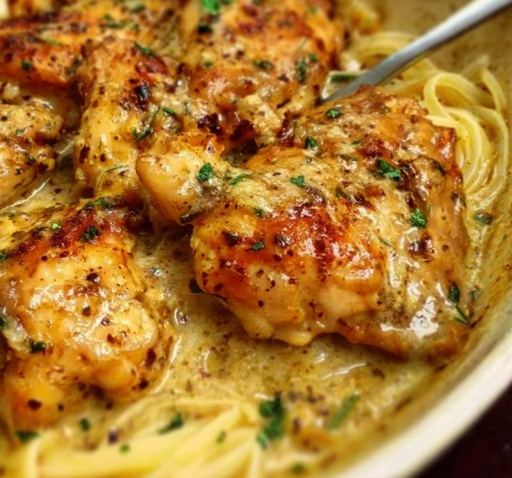 - Serve this luscious chicken over the cooked pasta, garnished with fresh parsley for a pop of color.