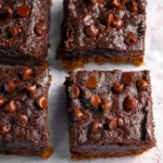 Serve warm with a scoop of vanilla ice cream or a dollop of whipped cream for an indulgent dessert. For a lighter touch, top with a smear of Greek yogurt or a sprinkle of flaky sea salt to enhance the chocolate. These brownies also travel well: wrap individual squares for lunchboxes or a picnic.