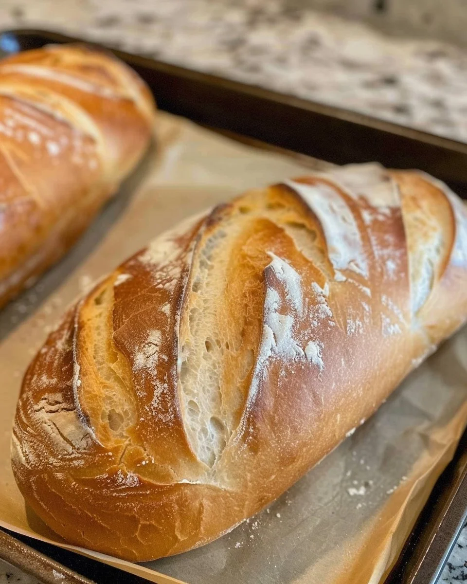 Serve this bread warm with salted butter, use it for crusty deli-style sandwiches, or slice and rub with garlic for a quick bruschetta. For a sweet-and-savory brunch, pair toasted slices with fruit preserves and ricotta. If you want more bread-to-table ideas, the classic Amish apple fritter bread shows how versatile homemade bread can be at family gatherings.