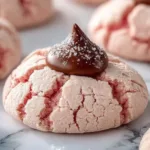 I first made these Strawberry Kiss Cookies on a rainy afternoon when I wanted something bright and slightly nostalgic. They’re soft, tender cookies made with real strawberry puree and finished with a chocolate kiss pressed into the warm center — a perfect cross between a sugar cookie and a thumbprint, but more delicate. They’re great for Valentine’s Day, bake sales, or anytime you want a pretty, fruity treat that’s easy enough for kids to help with. If you like seasonal twists, these pair well with other fruity cookie ideas like strawberry cheesecake cookies for a dessert table.