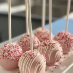 - Transfer the dipped pops to a parchment-lined tray. Decorate immediately with sprinkles or drizzle melted red or pink candy melts over the top.